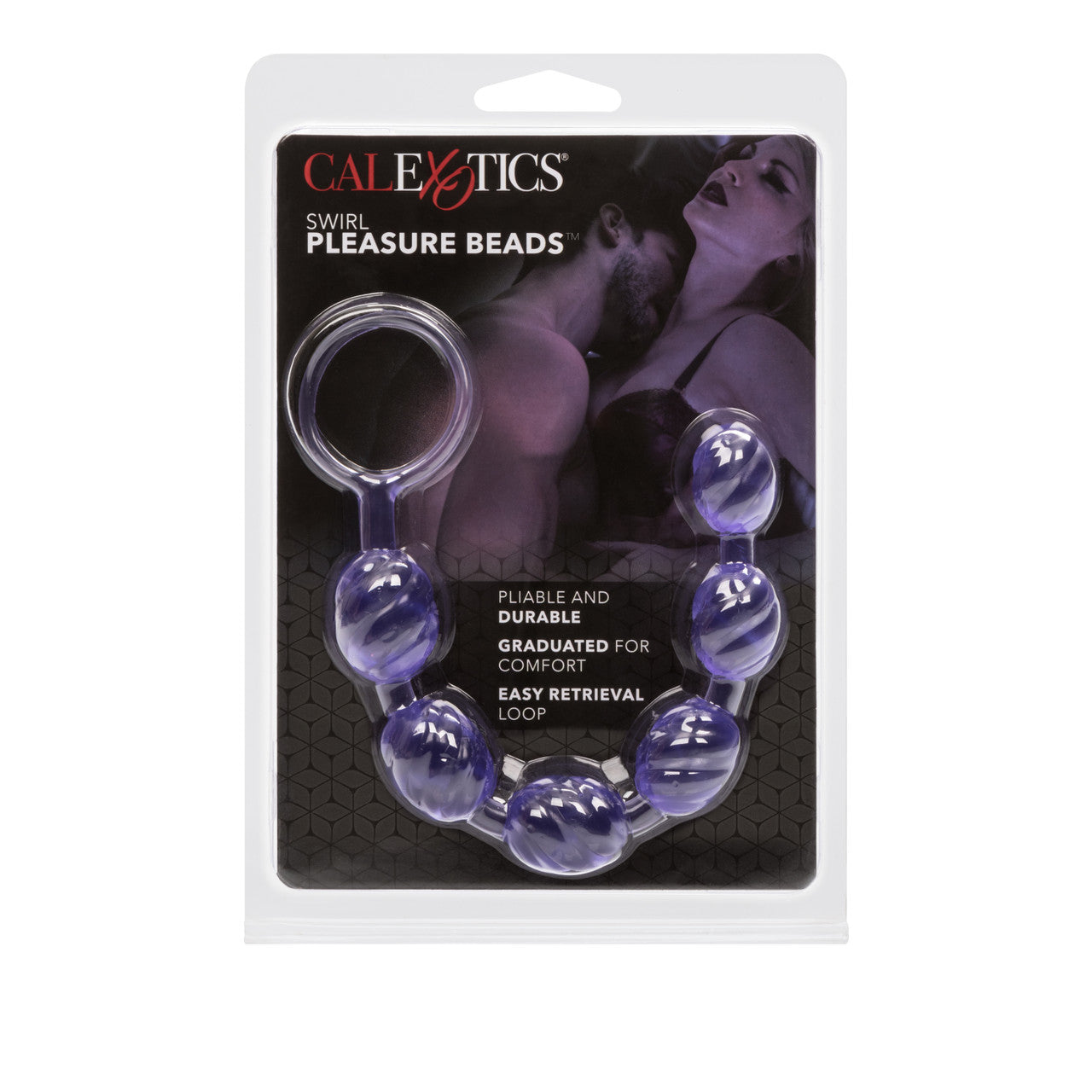 Swirl Pleasure Beads Purple from California Exotic Novelties. Sensually swirled for ultimate and extended personal pleasure, the Swirl Pleasure Beads are perfect for muscle training and extended sensual satisfaction. The easy to use Love Beads are graduated for sensitive application and heightened orgasmic pleasure. Use the flexible, pliable Beads for adventurous, sensual exploration of the solo or lover kind. The Love Beads are made from durable, pliable, phthalate free PVC and have a graduated design for comfortable stimulation. The string of six sturdy Beads measures 8 inches in length. .75 inch in diameter and features a flexible Cord with an easy to use Retrieval Ring. The sensuous pleasure Beads are designed for tantalizing erotic play and mind blowing ecstasy. Use your imagination and explore your wildest fantasies with this sensually Swirled pleasure tool. Insert one Bead at a time and enjoy the ripples of intensely pleasurable delight. For maximized sensations, and increased sensitivity, always use a quality water based personal lubricant with this sex toy. The Love Beads are suitable for the first time and experienced users who want to explore beyond personal pleasure. Use the Beads for adventurous intimate solo play, or during spontaneous seduction with your lover. The sturdy Retrieval Ring ensures easy and safe insertion and removal of the Love Beads after climax. Before and after every use, remember to clean the Pleasure Beads in warm soapy warm. A sex toy cleaner spray can also be used. Rinse with warm water. Pat dry before storing. Graduated, flexible, pliable Crystalessence Beads with a sturdy Retrieval Ring. Graduated and Slim Anal Beads designed for the novice. Handy Retrieval Ring makes play and removal a snap. Safe and pure for body and pleasure. Made using phthalate free, non-toxic materials PVC. Beads measure 8 inches long by .75 inch in diameter graduated in size. Bulk weight 2 ounces. Always clean before and after use plus between partners. Orgasm balls, Kegel balls, women's health, unisex toy. Swirl Pleasure Beads is a registered trademark for California Exotic Novelties. Sex toys and sexual wellness. Categories: Anal Toys, Health and Beauty Aids, Sex Toys for Couples, Men, Women, Anal Beads. 2023.