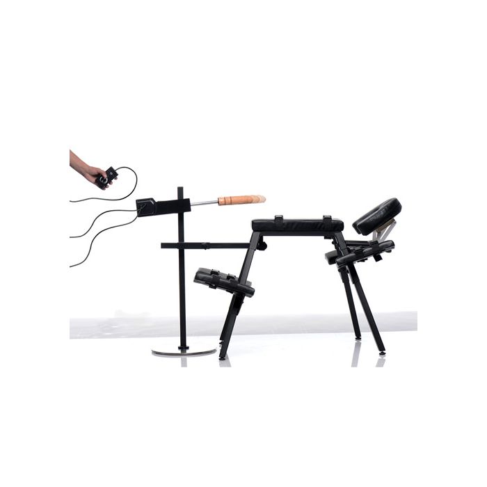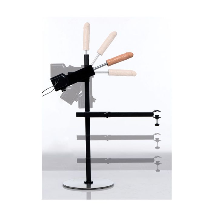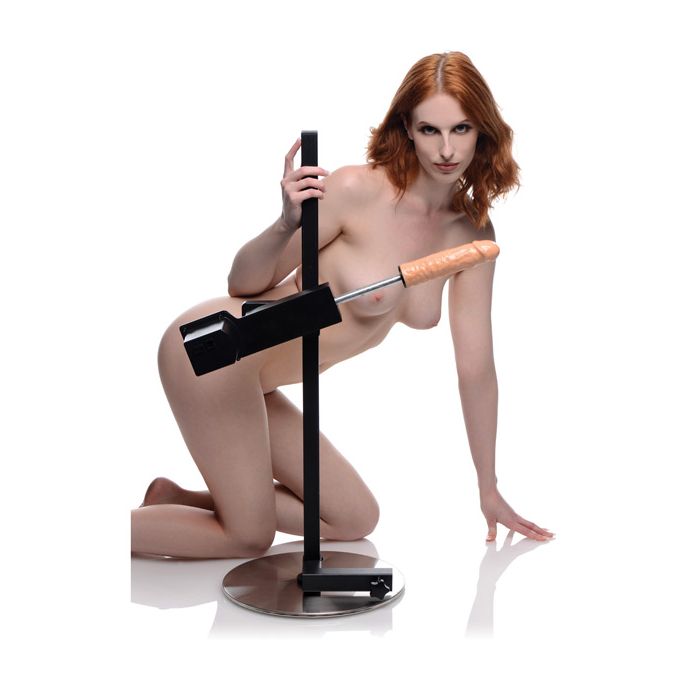 Create your ultimate BDSM and sex station with this versatile sex machine! The Dicktator provides pounding, penetrating pleasure at the control of your fingertips. This machine was designed to mount to the Obedience Sex Bench for non-stop screwing while they are comfortably restrained, but it is also a convenient machine for use without. Get creative with your bondage set-up and simply add the Dicktator in with its customizable stand. The mounting arm adjusts in length and height. Adjust the height and angle of the machine to fit your partner perfectly. You can even adjust the thrust length! Use the multi-speed dial to play with various thrusting speeds, from slow and sensual, to rapid and ravishing. The thick, veiny dildo is compatible with silicone and water-based lubricants and easy screws onto the thrusting arm. The durable steel frame of this fucking machine will stand up to vigorous use through many play sessions. You will dictate the pounding your partner receives! Measurements: Stand is 34.25 inches in height, with a 13.75 inch diameter base. Connector bracket is 21.5 inches in length. Thrust length adjusts from .5 inch to 3 inches. Dildo is 7 inches in length, 2 inches in diameter. Material: Machine is made of steel and ABS plastic. Dildo is made of TPE. Color: Black. Note: US 110-220v power cord included. Includes an allen wrench and machine lubricant. From XR Brands.