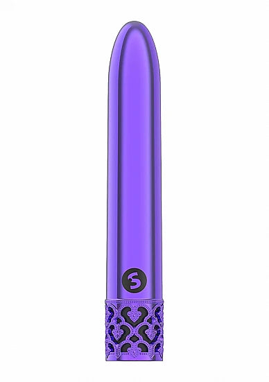Royal Gems Shiny Purple ABS Plastic Bullet Vibrator Rechargeable from Shots Toys. You deserve a Royal Climax. You do not need to be royalty to enjoy this elegant line. The sleek metal finish makes this vibrator the crown jewel of any collection. Shiny is slim and long, great for internal or external stimulation. The magnetic fully rechargeable proprietary New Generation F-1 motor design delivers mind blowing vibrations uniformly across the full surface of the toy. Don’t settle for the common, choose to be royal. Dimensions package 6.5 inches by 3.94 inches by 1.34 inches. Weight package 0.4 ounce. Product dimensions 4.25 inches. Product diameter 0.71 inch. Quantity motors 1. Rotations vibration tip 10,000 Revolutions per minute RPM. Speed modes 10. Multi speed vibrations. Noise level <45 decibel dB. Rechargeable vibrations. Rechargeable time 120 minutes. Recharged battery life time 60 minutes. Waterproof vibrations. Splash proof for play in the shower. Phthalate free, body safe materials ABS Plastic. Shots Toys - Royal Gems Vibrator. Categories: Classic Vibrators, Rechargeable Vibrators, Sex Toys for Women, Vibrating Bullets and Eggs. 2023.