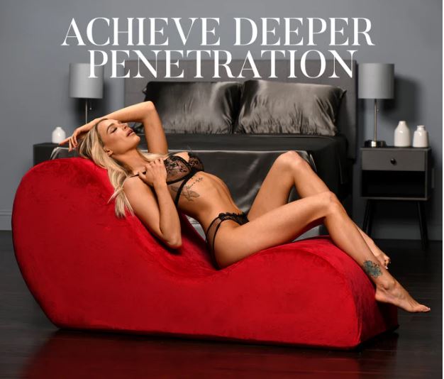 Reimagine sex and play with this curved, chaise lounge couch! The velvety cover is made of polyester and gently caresses your skin as you ride on top of it. Recline back and let your partner part your legs and give you some attention with their mouth, lips, tongue and hands. Turn over and lean your arms and chest against the upper part of the couch while you kneel against the dip in the couch and do it Doggy Style! You can ride them without having to practice a bunch of yoga stretches when you're supported up off the ground and able to straddle them! Enhance every position and get to your favorite angle that hits that sweet spot with this sexy, plush couch!