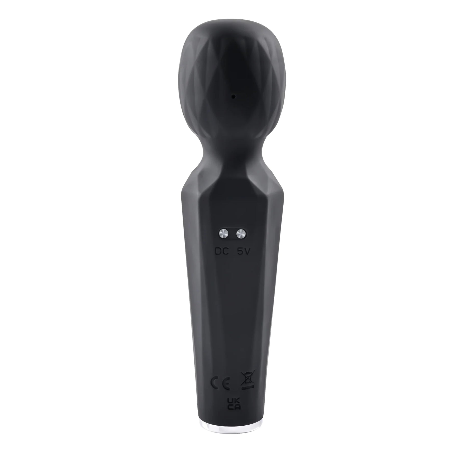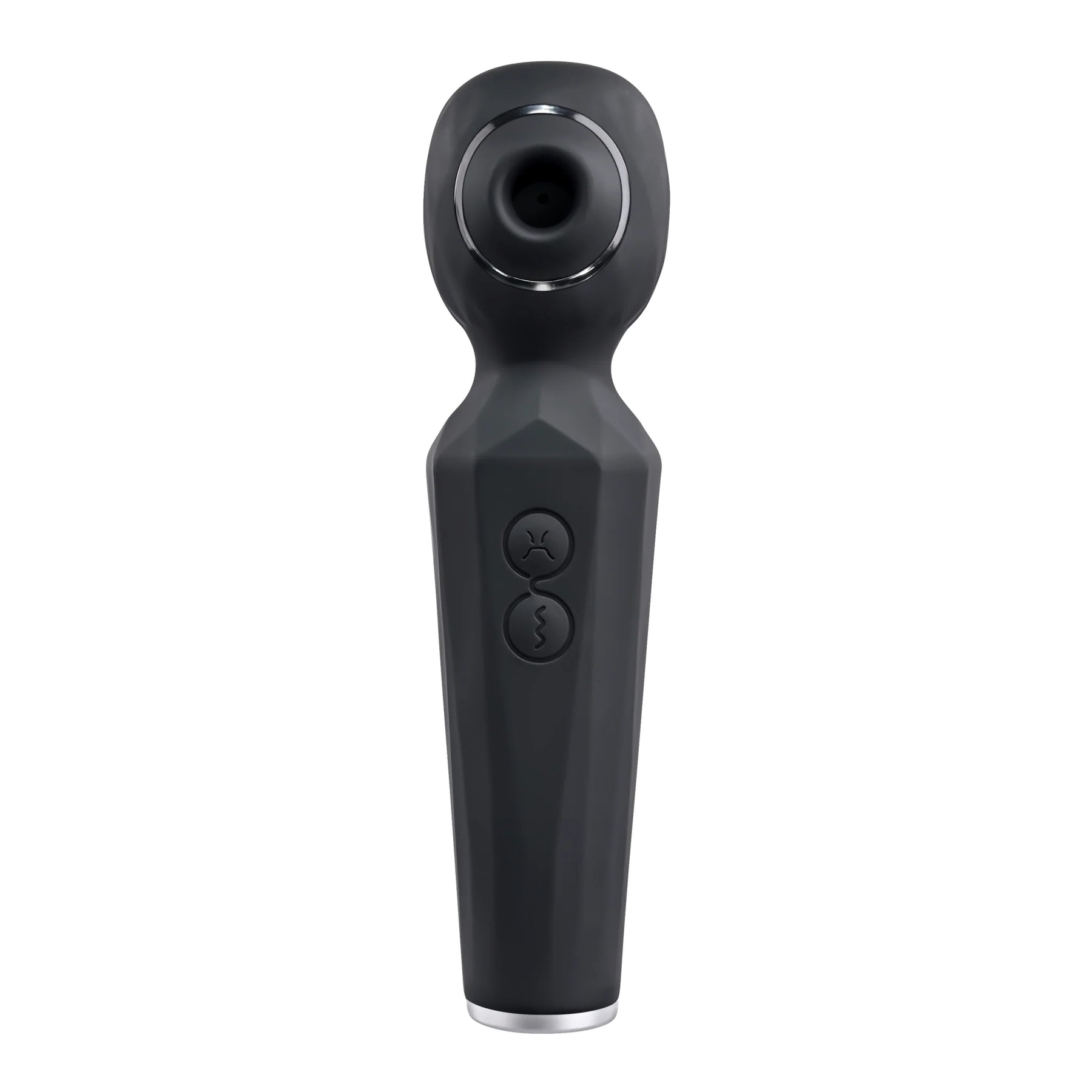 Features: sucking wand vibrator. Powerful vibrations in diamond textured, rigid wand head. 5 speed suction orifice on wand head. 8 vibrating speeds and functions in wand. 2 motors controlled separately. Textured handle for secure grip. White Light Emitting Diode LED light in button when in use. Blue, red and green lights blink in a circle around orifice when in use. Made from creamy smooth Silicone. Detail made from chrome finished ABS plastic. Size height 6.38 inches, depth 1.71 inches, width 1.53 inches. Weight: over half a pound. Phthalate free, latex free. Splashproof for play in the shower. Magnetic rechargeable, USB cable included. Categories: Rechargeable Vibrators, Magic Wands, Body Massagers, Solo Body Massagers, Palm Size Massagers, Health and Beauty Aids. 2022.