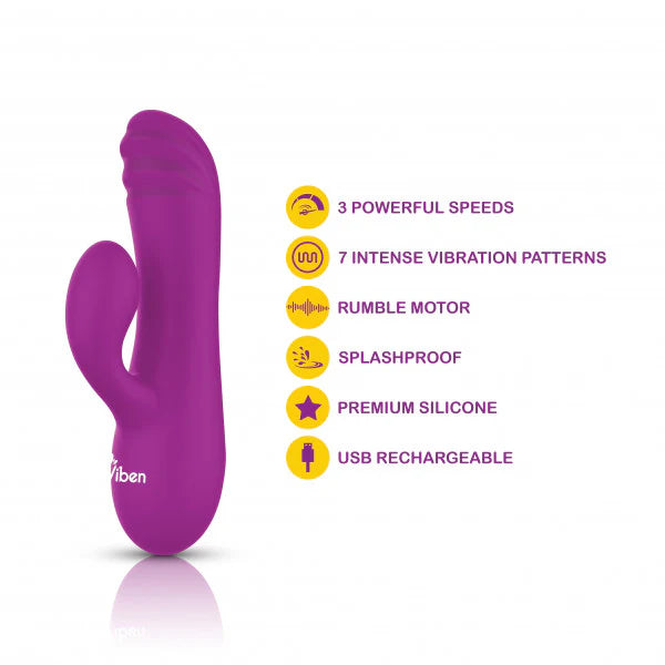 Viben’s Jolie is your perfect travel-size pleasure companion. This powerful pocket sized g-spot rabbit vibe features two powerful, deep, rumbly motors and is crafted of soft, silky silicone. Jolie is flexible and designed with pleasure ridges to heighten your erotic adventures. Jolie is splashproof and features an easy to use on/off button, for instant pleasure. Powerful g-spot rabbit vibe mini, on-the-go companion with pleasure ridges. Featuring 2 rumbly motors and ergonomic design. USB Rechargeable, splashproof and body safe. • 3 Powerful Speeds • 7 Intense Vibration Patterns • Rumble Motor • Pleasure Ridges • Travel-Friendly • Splashproof • Premium Silicone • USB Rechargeable • RoHS Compliant • Prop 65 Compliant • 1 Year Warranty Battery Info: Full charging time is 1.5 hours Play time is approximately 0.67 hour
