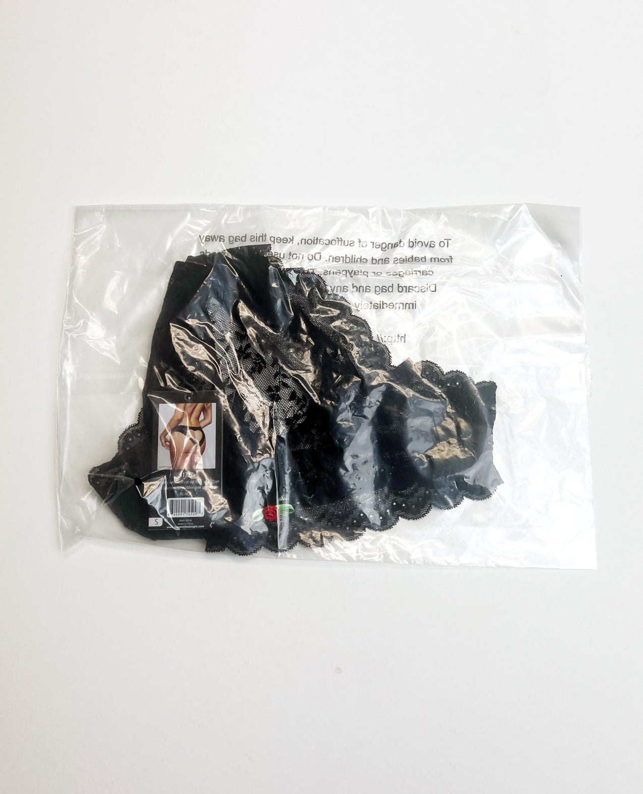 Lace Panty w/Heart Cut Out Back & Pearl Chain Detail - Black 1X/2X