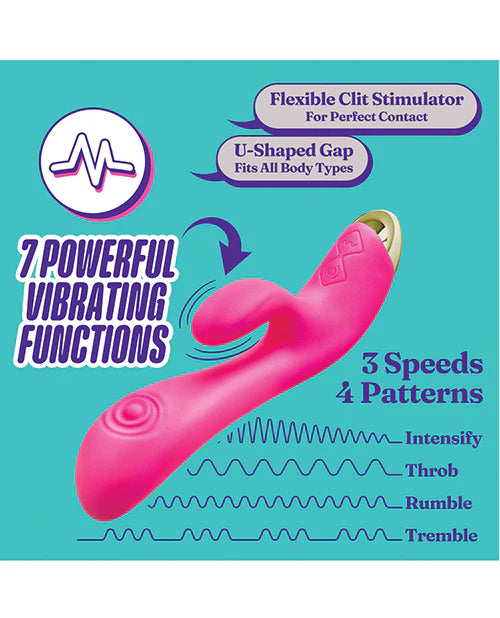 When it comes to luxury vibrators, The Aria® Pleasin' AF silicone rechargeable vibrating rabbit will be your favorite new addition to your collection. It is made from pure platinum cured Puria silicone and enveloped in satin smooth UltraSilk that is safe for the body, making it a perfect option for those who prioritize their health and well-being. One of the key features of this toy is the dual pulsing feature on its shaft that sensuously and gently pulsates inside of you. Choose from 3 speeds to flow with you as you ride into orgasm. Your clitoris is bathed in the stimulating vibrations from the soft flexible stem of the clit stimulator. There are 7 vibrating functions to choose from. 3 speed as well as 4 unique vibrating rhythms. The Magna Charge® rechargeable battery ensures that the toy is always ready for use. In addition to its many features, the rabbit is also designed with the user's comfort in mind. Its ergonomic shape and size make it easy to hold and maneuver, while the clit stimulator provide targeted stimulation to the clitoris. Whether used alone or with a partner, this toy is sure to enhance any sexual experience and provide hours of pleasure. Enjoy it in the shower or bath as it is fully IPX7 submersible waterproof. Overall, The Aria® Pleasin' AF is a premium adult toy that is worth investing in. Its high-quality materials, unique features, and user-friendly design make it a must-have for anyone looking to spice up their sex life. Lab tested body safe. Contains no phthalates, paraffins, latex nor fragrances. Water Based, Hybrid Lube Compatible. Hypoallergenic