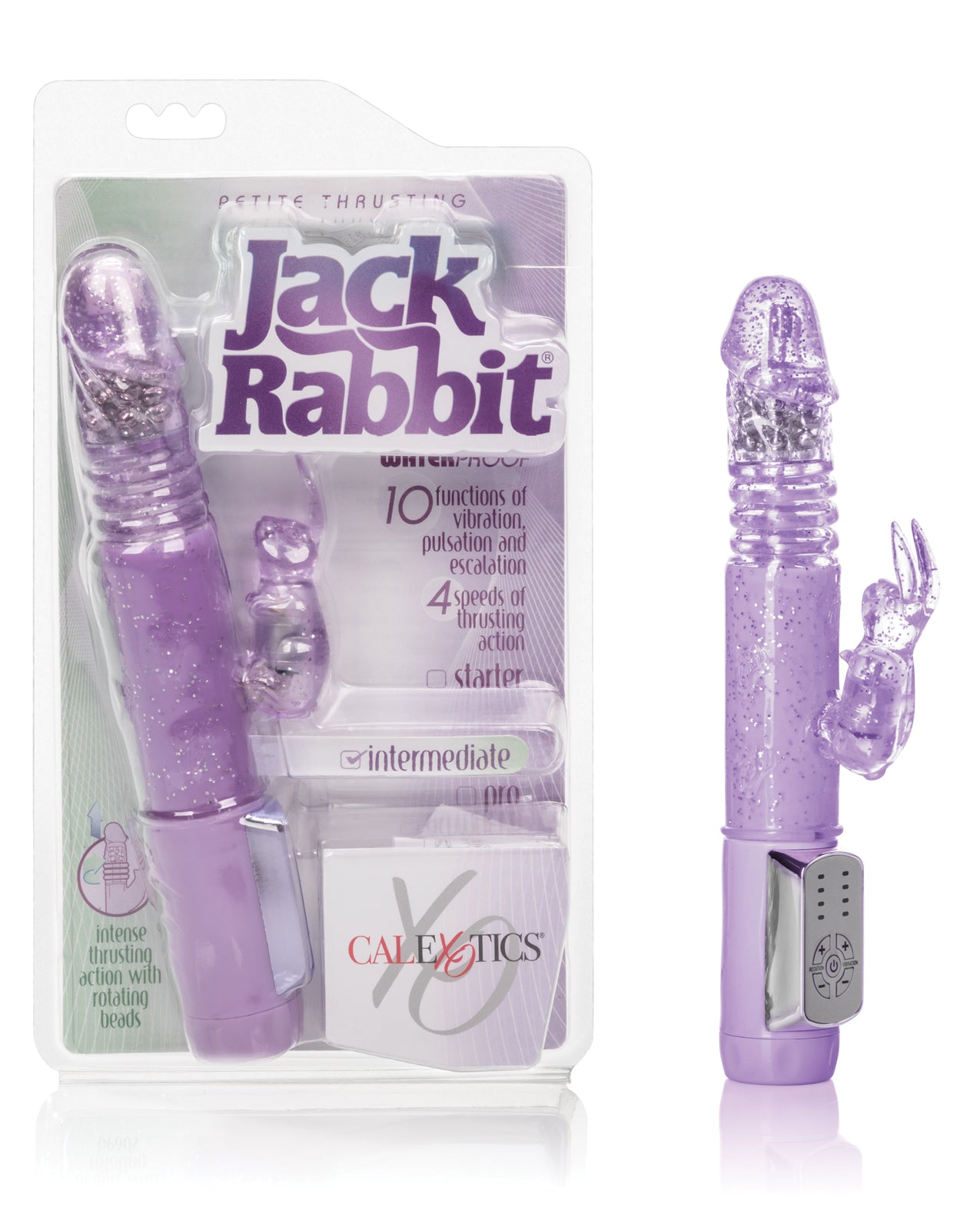 Whenever you’re ready for hot and intense intimate action, the Petite Thrusting Jack Rabbit is your ideal companion. The discreetly sized combo stimulator boasts 10vibration, pulsation and escalation functions, 4patterns of thrusting and rotating actions, and a curvy bunny shaped clitoral teaser.