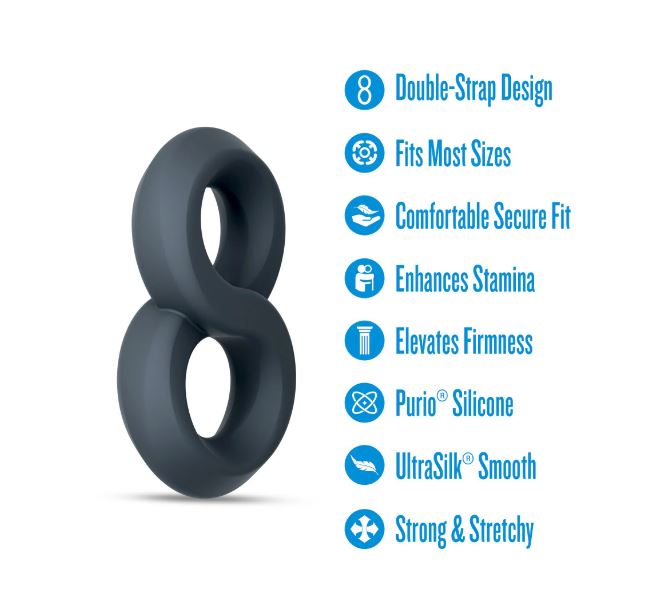 Maximize and boost pleasure with Performance® Plus Launch! This premium double strap ring is designed to wrap securely around both shaft and balls, enhancing stamina, supporting firmer erections, and extending playtime with bold, targeted control. Its durable, figure-8 design offers a comfortable yet commanding fit that heightens sensation and keeps everything locked in. Crafted from Purio® platinum-cured liquid silicone and finished in UltraSilk® for a soft, satin-smooth feel, Launch is strong, stretchy, and built to adapt. Whether you're focused on endurance or intensity, this dual-strap design delivers snug, no-slip performance that keeps you ready for action, session after session.