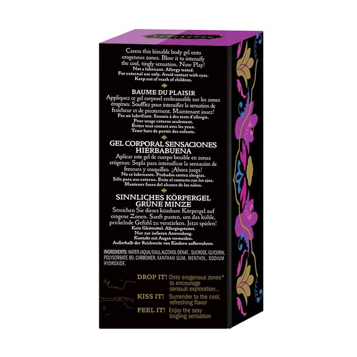 Feel the cool, tingling sensation. Kissable, water-based body gel for romantic play. Formulated to provide a refreshing cooling, tingling sensation on the skin. Not a flavored lubricant. Water-based and non-staining. 1.7 ounce tube.