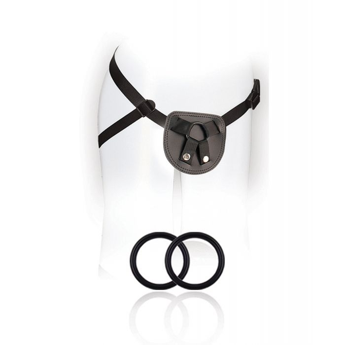 SX For You Beginnerâs Harness is an evolution in adjustable strap-on systems. Comprised of 2 strong silicone support rings, there's no need to measure dildos ever again. Fasteners secure the support rings making SX For You Beginner's Harness compatible with all dildos - even extreme dildos! Durable constructed strap-on harness is for first timers and advanced players alike. The performance pad is constructed from velvety smooth faux leather and the adjustable straps are soft nylon for comfortable wear. SX For You Beginner's Harness fits up to a 47 inch waistline.