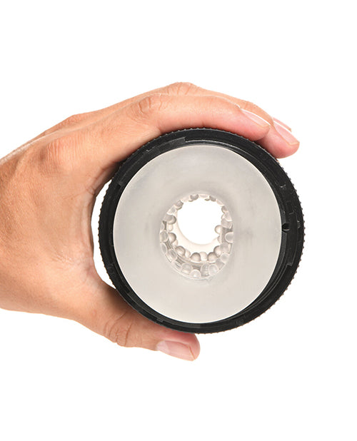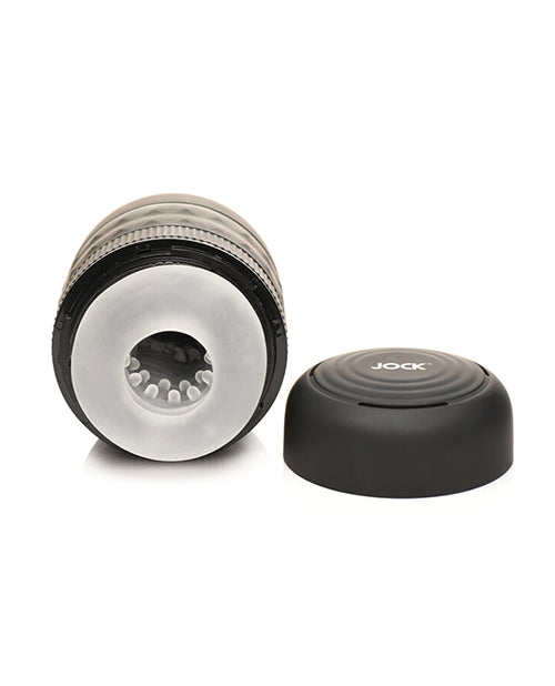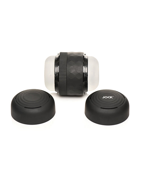Curve Toys Jock Squeezable Tunnel Double Masturbator . Tightening and Vibrating Masturbator. 8 tightness settings. Small and large openings for extra stimulation Soft, textured tunnel. Rotate ring on outer case to adjust tightness. Non-slip outer case. Phthalate-free. Care and Maintenance. Care Instructions: Clean with soap and warm water or toy cleaner. Use with any water-based lubricant.