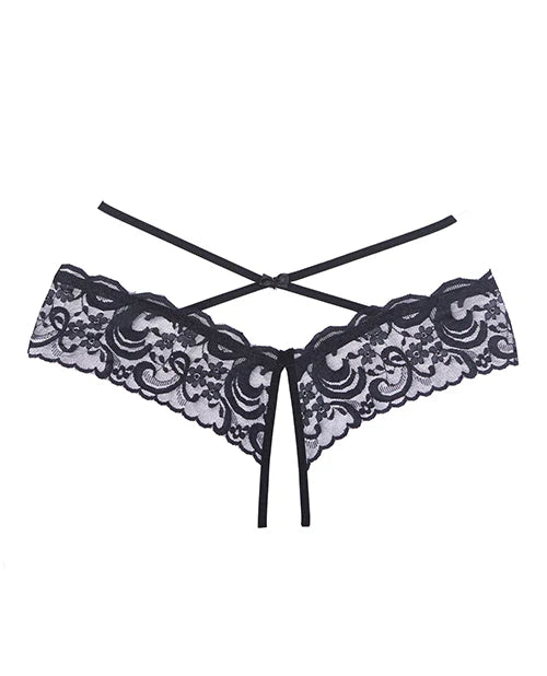 Hella Raw Adore Dare Me Cross Waist Open Lace Panty Black O/S