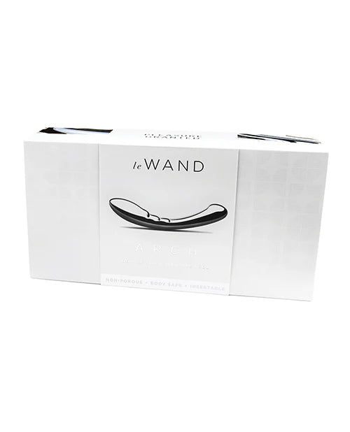 Indulge in rolling climaxes and experience endless gratification with the Le Wand Arch. The crescent-shaped, double-ended shape of this stainless steel wand is created for next-level G-spot stimulation. Glide the Arch into place, press it against your G-spot and let this double-ended pleasure tool send you into orgasmic bliss. Choose between the rippled bulbous end for a delightfully satisfying G-spot massage or the opposite end which boasts a flattened tip for targeted G-spot stimulation. Stainless steel toys are prized for their hardness, weight and hygiene. Plus, they can be used with all types of lubricant. Try cooling them down or warming them up with water for temperature play. To clean, simply use soap and water, pop them in the dishwasher or boil them for 3 to 4 minutes to fully disinfect.