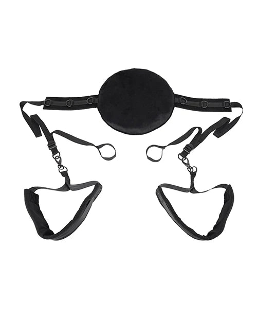 Pivot Postioning Partner fro Sportsheets. Take comfort to the next level with the Pivot Positioning Partner, an entirely new approach to our signature Sex Sling designs. The large, flat Pillow design, provides the ultimate support cradle for your head and neck. Soft Ankle Cuffs connect to the padded shoulder straps with adjustable tethers to keep you as loose and free or tight and restrained as you like while the added thigh straps keep your legs supported without growing fatigued. Durable hardware helps keep you locked in with easy release and adjustability to cater to your unique needs and desires, no matter how they change in the moment. Dimensions 14.25 inches in height by 10 inches in width 14.25 inches by 3.5 inches.