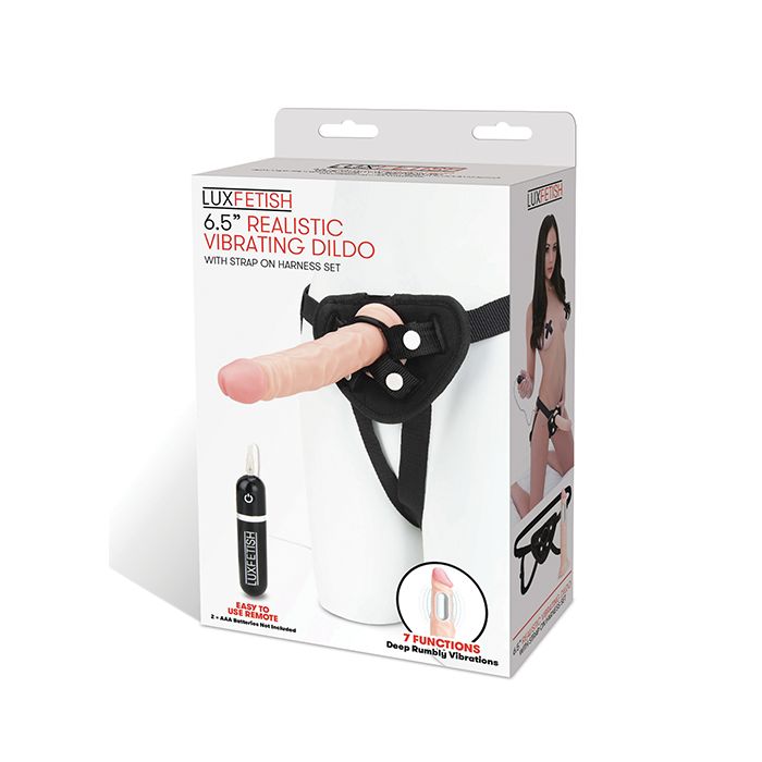 Lux Fetish 6.5" Realistic Vibrating Dildo w/Strap On Harness Set