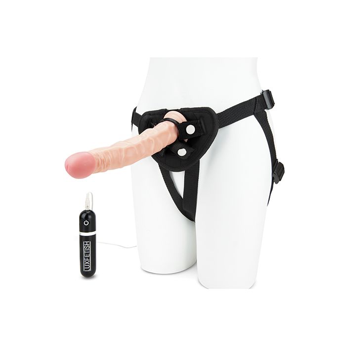 Lux Fetish 8.5" Realistic Vibrating Dildo w/Strap On Harness Set