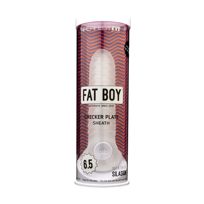 We are thrilled to introduce the new Fat Boy(TM) Checker Plate Sheath in three size options with all new packaging. Like our original Fat Boy(TM) cock sheath, but with a new textured surface. Adds noticeable girth to your cock without being too much for your partner to handle. Made of super soft and stretchy SilaSkin(TM), it is designed to give both partners intense, eye-rolling pleasure.