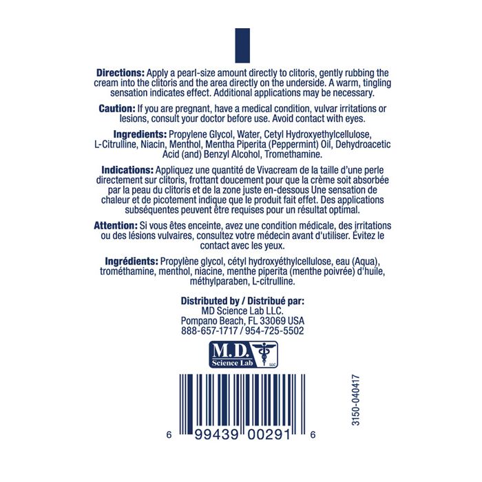 Viva Cream® Whether 18 or 80, women are seeking ways to enrich their life and bring more passion and intimacy into their relationships. Studies show up to 50% of women will experience a sexual dysfunction in their life and that the majority of women do not achieve orgasm from intercourse alone. If orgasm is achieved, it is most often due to clitoral stimulation. Now, with Viva Cream®, sensitivity and intimacy may be heightened and a new rich orgasmic sexlife is possible. Viva Cream® is a unique combination of herbal extracts, vitamins, and amino acids in a clear, non-sticky gel. Each ingredient has been chosen for its proven effects on the sensitive tissues of women. Using Viva Cream® may stimulate and potentiate a woman's desire, aiding in intensifying arousal. Viva Cream® is made for the demands of every woman who wants more.