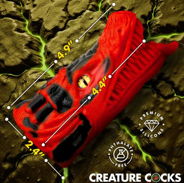 Fantasy Stroker: This dragon head stroker has long teeth, a fierce-looking face, and a long tongue! Penetrate its open maw with your rod!