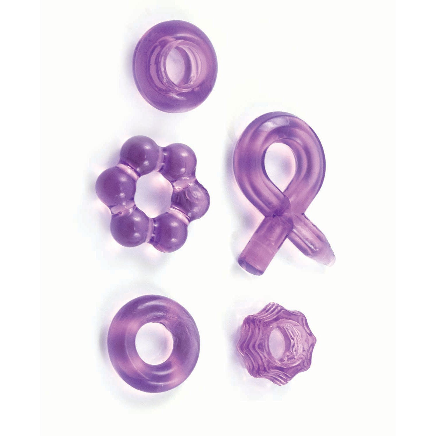 Elevate Your Intimacy with the Nasstoys Enhancer Five-Piece Cock Ring Set! This thoughtfully designed set includes five stretchy, reusable cock rings that combine comfort and performance. Featuring a bold bolt-style ring, two classic plain rings, a plain ring with hanging stimulators, and a ball-textured ring, this versatile set gives you plenty of options to suit your mood and desires. These rings are specially crafted to enhance erections, making them last longer and feel more sensitive, delivering a more satisfying experience for you and your partner. Made from body-safe materials, these rings are one-size-fits-all and are as easy to use as they are effective. For the best results, apply a water-based lubricant before use to ensure they slide on smoothly without catching on skin or body hair. Perfect for beginners and experienced users alike, this set is a great addition to your collection, offering durability, functionality, and plenty of room for experimentation. Easy to clean and reusable, it’s a practical, pleasure-packed solution for enhancing your performance.