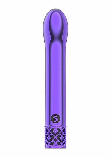 Royal Gems Jewel Purple ABS Plastic G-Spot Vibrator Rechargeable from Shots Toys. You do not need to be royalty to enjoy this elegant line. The sleek metal finish makes this vibrator the crown jewel of any collection. The curved tip on the Jewel Vibrator is perfect for internal or external pleasures. The magnetic fully rechargeable proprietary New Generation F-1 motor design delivers mind blowing vibrations uniformly across the full surface of the toy. Do not settle for the common, choose to be royal. Dimensions package 3.94 inches by 1.34 inches by 6.5 inches. Weight package 5.89 ounces. Product dimensions 4.72 inches by 0.98 inch. Product weight 1.16 ounces. Product diameter 0.71 inch. Quantity motors 1. Rotations vibration tip 10,000 Resolutions per minute RPM. Speed modes 10. Multi speed vibrations. Noise level <45 decibel dB. Rechargeable vibrations. Rechargeable time 120 minutes. Recharged battery life time 60 minutes. Waterproof vibrations. Splash proof for play in the shower. Phthalate free, body safe materials ABS Plastic. Shots Toys - Royal Gems G-Spot Vibrator. Rechargeable Vibrators, G-Spot Stimulations, Sex Toys for Women, Dildo G-Spot. 2023.