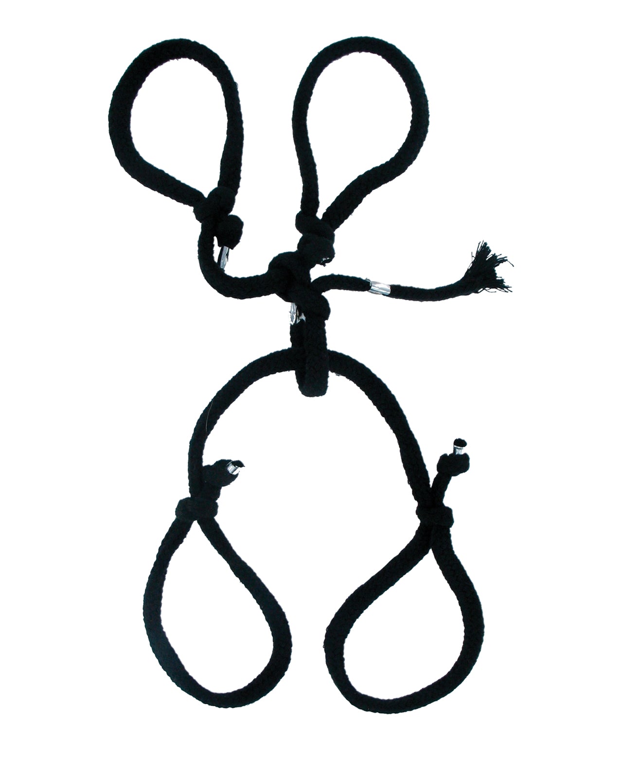 Secure your lover in a classic bondage position with this Rope Hogtie restraint. Perfect for beginners and strong enough for pros. The knots come tied and pre-assembled; just slide them over your partner's wrists and ankles for that snug fit.