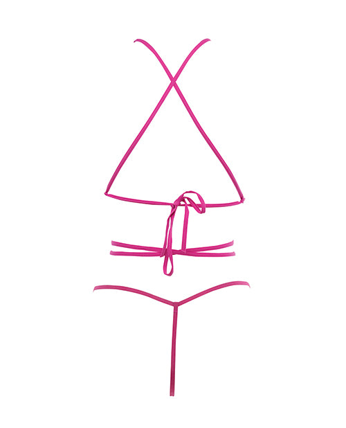 You can save other things for a rainy day…this teddy should definitely not be one of those things. Nicola open cup mesh teddy is that visual aphrodisiac that ever so lightly wraps your body, with skinny sexy straps. Neck straps loop around neck and body tying in back. Front straps wrap around the body and tie in front. Elastic G-string back. Large/XLarge. Bust: 38in.-40in. Waist: 30in.-32in. Low Waist: 32.5in.-34.5in. Hip: 40in.-42in.