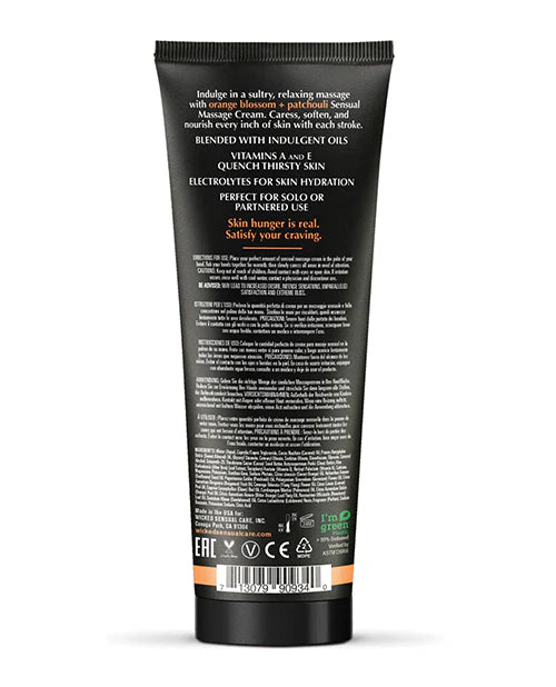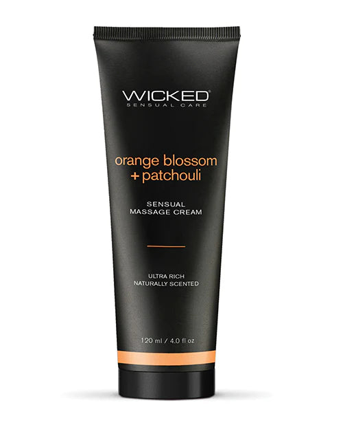 Wicked Massage Cream Orange Blossom + Patchouli 4 fluid ounces. Indulge in a sultry, relaxing massage with Orange Blossom and Patchouli Sensual Massage Cream. Caress, soften and nourish every inch of skin with each stroke. Blended with indulgent oils. Vitamins A and E quench thirsty skin. Skin hunger is real. Satisfy your craving. Electrolytes for skin hydration. Perfect for solo or partnered use. Directions for use: place your perfect amount of sensual massage cream in the palm of your hand. Rub your hands together for warmth, then slowly caress all areas in need of attention. Be advised: may lead to increased desire, intense sensations, unparalleled satisfaction and extreme bliss. Orange Blossom plus Patchouli Sensual Massage Lotion. Ingredients: Water, Caprylic/Capric Triglyceride, Cocos Nucifera Coconut Oil, Prunus Amygdalus Dulcis Sweet Almond Oil, Cetearyl Olivate, Glyceryl Stearate, Dimethicone, Glycerin, Cetearyl Alcohol, Citrus Sinensis Sweet Orange Oil, Citrus Aurantium Dulcis Orange Peel Oil, Citrus Aurantium Amara Bitter Orange Leaf/Twig Oil, Pogostemon Cablin Patchouli Oil, Helianthus Annuus Sunflower Seed Oil, Pelargonium Graveolens Geranium Flower Oil, Citrus Aurantium Bergamia Bergamot Fruit Oil, Cananga Odorata Ylang Ylang Flower Oil, Citrus Limon Lemon Peel Oil, Eugenia Caryophyllus Clove Bud Oil, Cymbopogon Martini Palmarosa Oil, Rosmarinus Officinalis Rosemary Leaf Oil, Santalum Album Sandalwood Oil, Labdanum Absolute Cistus Ladaniferus Labdanum Resin, Theobroma Cacao Cocoa Seed Butter, Butyrospermum Parkii Shea Butter, Aloe Barbadensis Aloe Vera Leaf Extract, Tocopheryl Acetate Vitamin E, Retinyl Palmitate Vitamin A, Ascorbic Acid, Sorbitan Olivate, Ceteareth-20, Calcium, Magnesium, Potassium, Xanthan Gum, Sodium Phytate, Sodium Benzoate, Potassium Sorbate, Citric Acid. Cautions: keep out of reach of children. Avoid contact with eyes or open skin. If irritation occurs, rinse well with cool water, contact a physician and discontinue use.Categories: Erotic Body Lotions, Creams, Health and Beauty Aids, Massage Lotions, Creams. 2023.