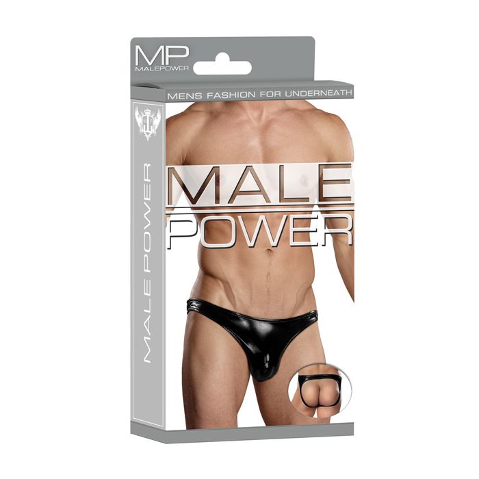 The Liquid Onyx Moonshine from Male Power. This liquid is a solidly sexy choice. You'll sizzle in these faux leather garments that combine the sensuality of the wet look with the comfort of soft, four way stretch fabric. The Wet Look is erotic and exotic. This figure hugging fabric is made of polyester and spandex, sleek and shiny like PVC but far more comfortable and easy to care for. The Wet Look is bodacious in all black. Color: Black. L/XL. Waist: 36"-42"