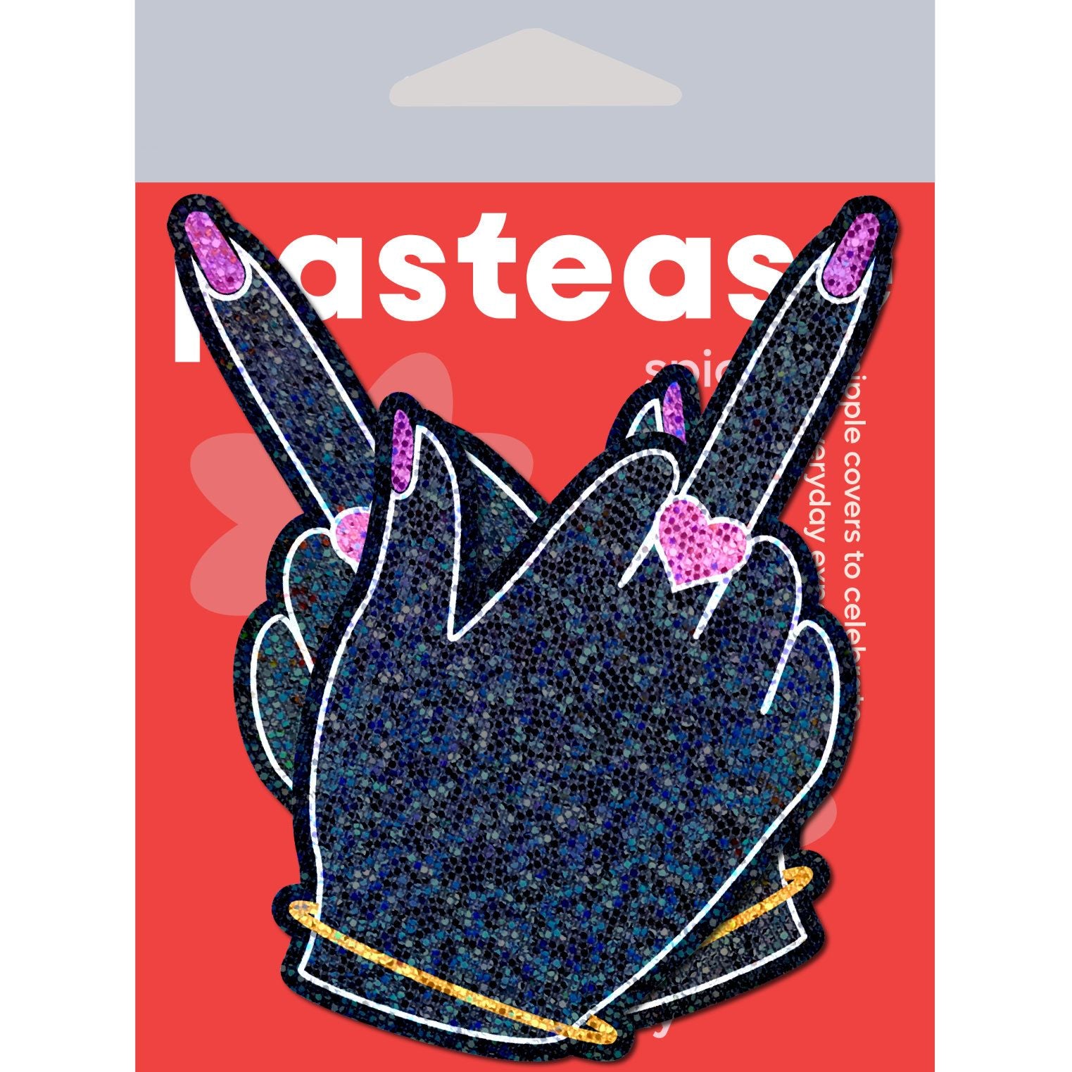 Pastease Glittering F*ck You Lady Hands from Pastease Brands. Middle Finger Pasties Glittering F*ck You Lady Hands Nipple Covers by Pastease. Hand made in the USA of soft form fitting material that forms seamlessly to curves and resists wrinkling over hardening nipples. Easy to apply. Just peel and stick on clean, dry skin. All Pastease Brands feature latex free, medical grade, waterproof adhesive that stay securely in place for as long as you like and until they are gently removed. Conceal or reveal with Pastease Brands nipple pasties when worn with a sexy outfit, daring bikini, sheer top, revealing dress, Hefty bag, body lotion, crazy costume, party theme or nothing at all! Dimensions: 2.8 inches by 4.7 inches. Coverage diameter: 2 inches. Pastease are the fun maker that brings out your inner Tease! All Pastease products are hand made, so the finished product you receive may vary slightly from the posted image. Go get your sexy fun freedom On! XOXO Pastease! Categories: Lingerie, Clothing, Sexy Costume Accessories, Valentine's Day, Pasties and Accessories. Restricted, Amazon Restricted. Primary image package. How to apply pasties image. 2023.