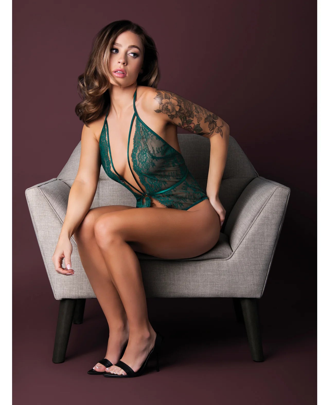 Hella Raw Evermore Lace Plunge Teddy - Emerald S/M