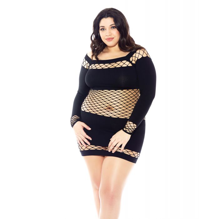 Nothing to Hide Nylon and Diamond Net Chemise. From iCollection. Queen. Size: 16-22. Bust: 40in.-50in. Waist: 35in.-42.5in. Hip: 43in.-51in.
