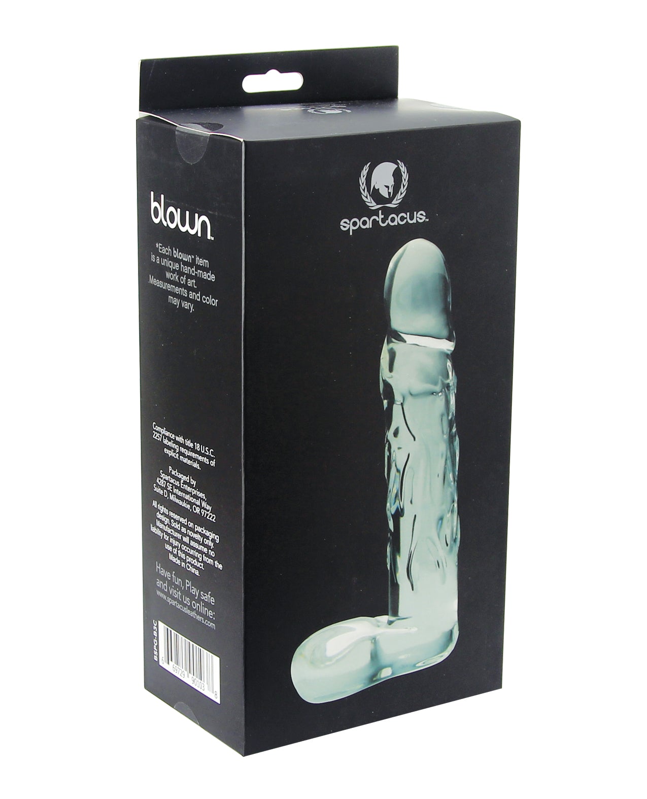 The Spartacus Blown Large Realistic Glass features a 3.75" base for grip and harness use and a realistically veiny, phallic design. Spartacus is known for its large selection of BDSM and leather products and now they've introduced Blown. This collection of artist designed and hand crafted borosilicate glass toys are non-porous, easy to clean, compatible with all lubricants and can be heated or chilled as desired. In response to customer requests they've developed this product to meet high expectations of premium quality. Each item comes packaged in a sturdy and stylish box. Beautiful form and thoughtful functionality combine to create a uniquely elegant product. Many of the BLOWN products can also be used with a harness.