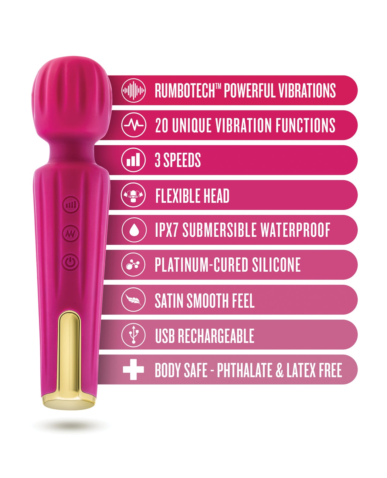 Live lushly! Allana is a powerful wand vibe with a flexible head that is ready to delight. Allana has 20 deep, rumbly vibration functions using the powerful RumbleTech™ motor that will let you explore a wide range of options, all focused on you. Allana feels luscious against the skin and is perfect for massaging. This USB rechargeable wand is also waterproof for bath and shower fun! Ultrasilk ™ smooth, soft silicone and ABS plastic, Allana is body-safe, phthalate free, fragrance free, and easy to clean. As with all products and/or materials at Blush it has been 3rd party lab tested to meet or exceed REACH and Prop65 safety compliance directives. It's your body. Be mindful of what you put in it.