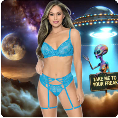 Hella Raw Underwire Lace Bra, Garterbelt & G-String