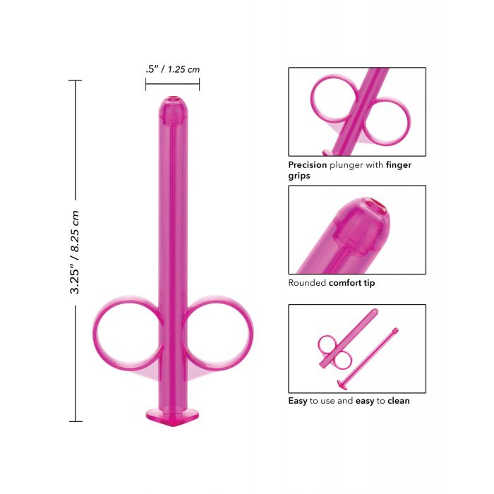 Reusable, refillable, and easy to clean, the Lube Tube™ is a lubricant dispensing tube set that lets you lubricate with pinpoint precision. To deliver luscious lubrication to just the right spot, the Lube Tube™ has a slim shaft, rounded tip and seamless body. Each slim tube is equipped with two finger loops and an easy-to-use plunger that make it each to control lubricant flow. Simply fill the tube with your chosen water-based lubricant and use the slim tip to deliver the perfect doe of lube to just the right spot every time. This transparent tube is easy-to-use, easy-to-clean and can be disinfected. Prior to and after each use, wash probe and bulb internally and externally with warm water and soap, then disinfect with the Universal Toy Cleaner.
