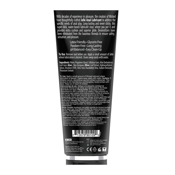 Carefully crafted and incredibly luxurious, take anal play to the next level with our Wicked Jelle Anal Lubricant. Highly concentrated to be extra thick, long-lasting, and never sticky, this super slick, water-based personal lubricant stays where you put it and provides extra cushion and superior glide. Wicked Sensual Care never uses de-sensitizers in any anal product to ensure safety, sensation, and pleasure.
