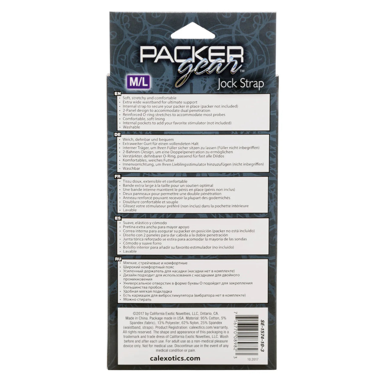 Packer Gear Jock Strap M/L from California Exotic Novelties. The Packer Gear Jock Strap the ultra soft strap on Harness designed with powerful performance and stretch to fit comfort in mind. This classic Harness has a supportive extra wide waistband, soft stretchy material and internal Probe straps for the ultimate support. Enjoy double penetration pleasure with the accommodating 2 panel design and unique Bullet Vibrator stimulation Pocket. The durable, reinforced O-ring stretches to accommodate your favorite Packer, Vibrator or Strapless Dildo. Beginners and expert users alike will love frustration free pleasure with this easy to wear Harness. Simply secure your favorite Probe, slip into the extra stretchy Waist and Thigh Straps and dive deep into passionate penetration or enjoy comfortable all day wear. Enjoy easy clean up by hand washing and hanging to dry. Thoughtfully architect for mutual pleasure. Make more of your intimate moments. A perfect fit is all yours with this stretchy and comfortable delight. As simple to clean as it is easy to use, you will find cleaning a Snap.