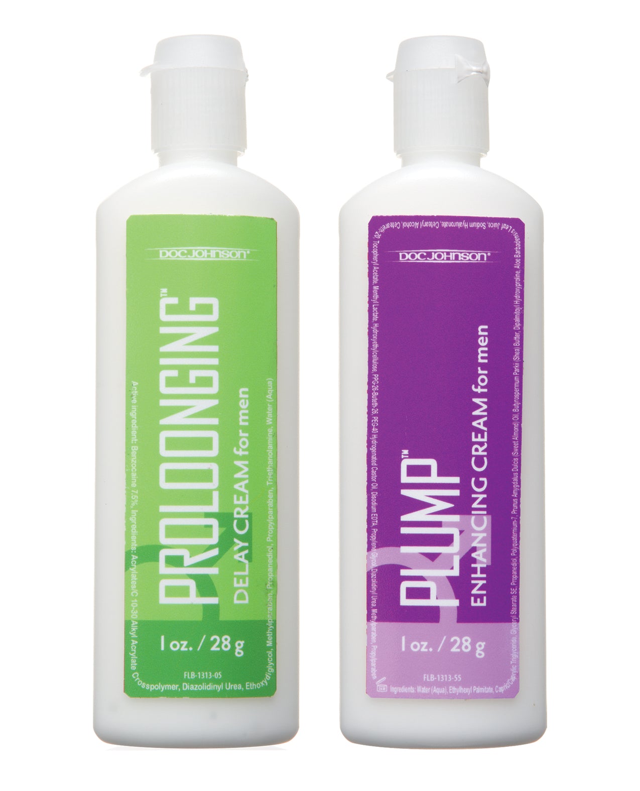 Get more banging for your buck with this travel-friendly sexual enhancement kit! Prolonging + Plump for Men features a 1 oz. tube of delay cream and 1 oz. tube of enhancing cream. The delay cream, “Prolonging”, contains 7.5% Benzocaine which acts as a desensitizing agent that helps to extend love making sessions and prevent premature ejaculation; while the size enhancing cream, “Plump”, increases blood flow to the penis for a thicker, larger look and feel. Both formulas are odorless, tasteless, and derived from natural ingredients.