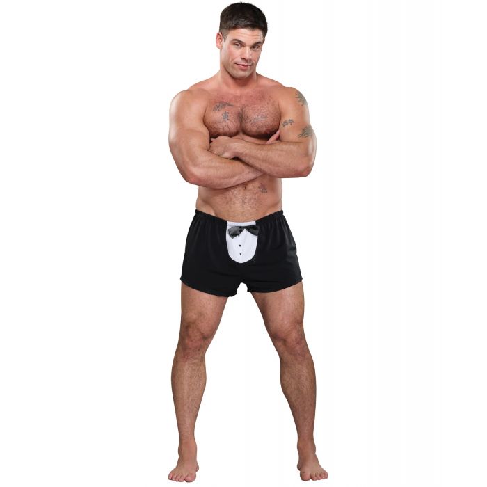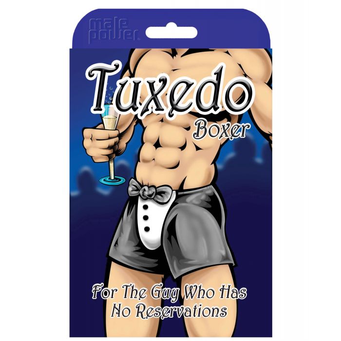 For the guy who has no reservations! The Male Power boxer is made of 100% Nylon. The one-size fits most outfit has a tuxedo design on the crotch. Get your balls in an uproar!