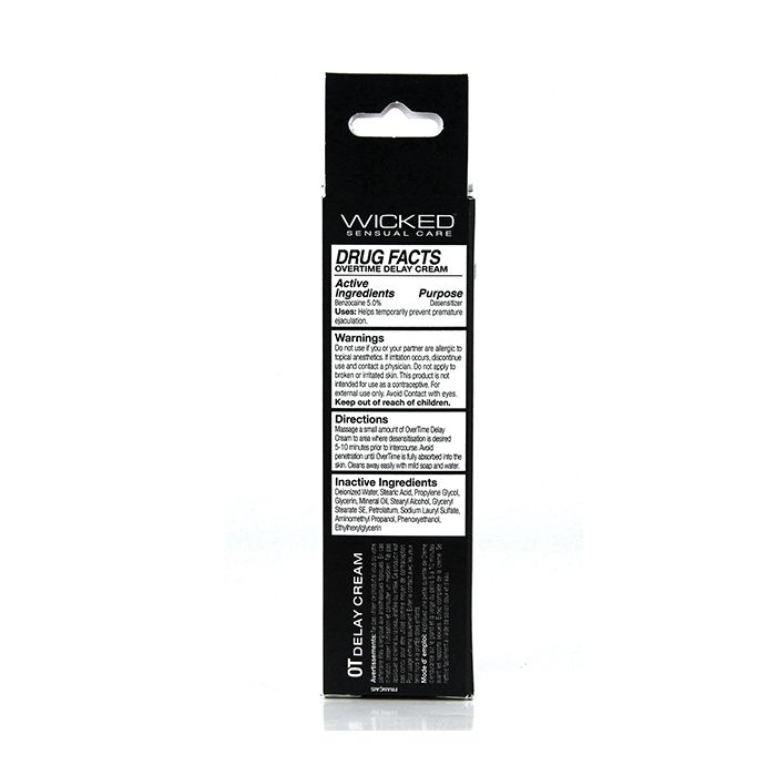 Enjoy a new confidence when Wicked OverTime. This unique, no-prescription formula with 5% Benzocaine gently eases the intensity of sensation and allows you the ability to put your love-making into overtime.Enjoy a new confidence when Wicked OverTime. This unique, no-prescription formula with 5% Benzocaine gently eases the intensity of sensation and allows you the ability to put your love-making into overtime.