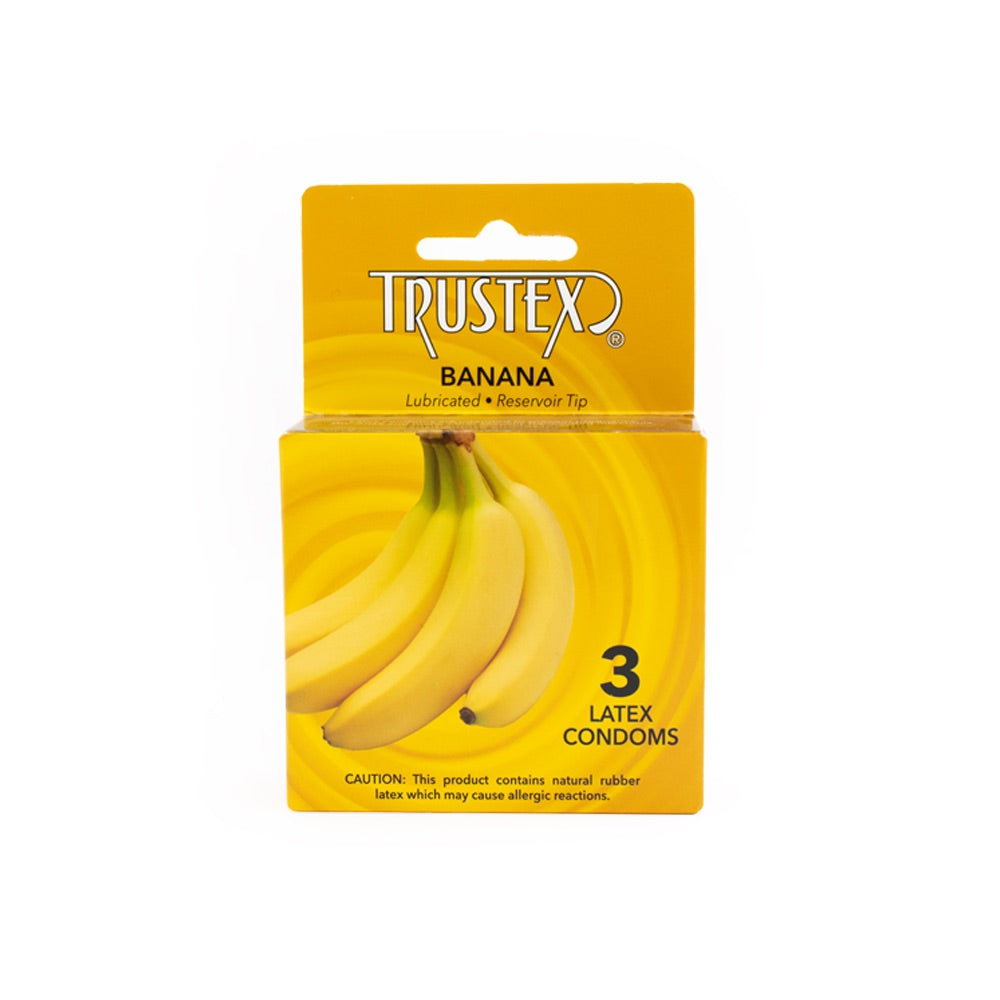 Trustex Flavored Latex Condoms Banana. These latex condoms are strong and durable, with a reservoir tip and lubrication for comfort during sex. The best part, however, is the delicious flavor on the outside for sweet oral satisfaction! This pack of three flavored condoms is the perfect accompaniment to spontaneous encounters with your partner, adding an extra tasty twist to oral sex. Available in eight mouth-watering varieties, trustex flavored condoms allow you to spice things up while still protecting from pregnancy and STDs. Type: Condoms. Flavor: Banana. Count: 3 Condoms. Special