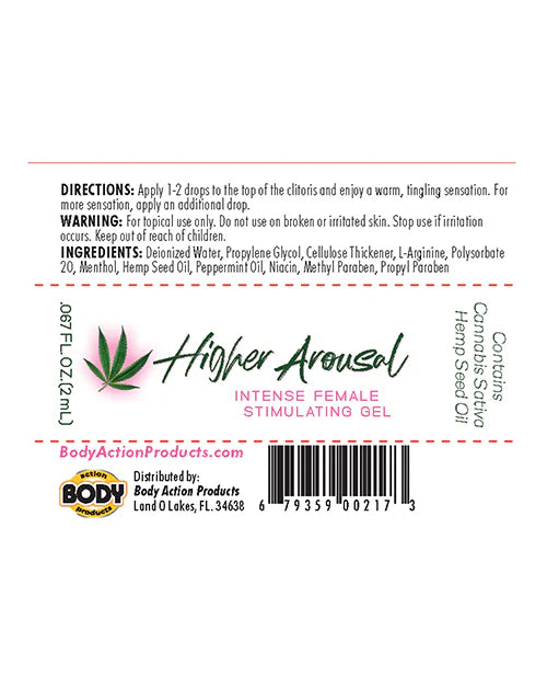 Higher Arousal Female Stimulating Gel - infused with Cannabis Sativa (Hemp) Seed oil. Amplifies sexual pleasure and increases sensitivity. Warm, tingling and stimulating.
