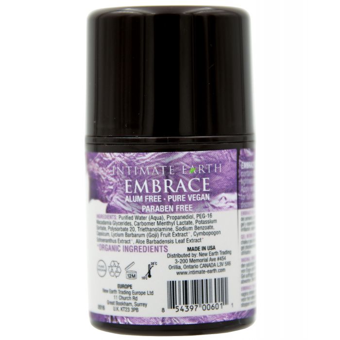 Intimate Earth understands that the vagina changes after childbirth. Often both men and women do not feel the same "embrace/connection" that they may have previously had. Our EMBRACE vaginal Tightening Pleasure Gel contains a blend of certified organic extracts and natural capsicum in a water, sunflower and almond oil base. This unique formula causes the vaginal tissue to temporarily contract. This gives tightness and warmth to increase pleasure for both partners. Unlike other tightening gels on the market, EMBRACE does NOT contain alumn, which works by dehydrating vaginal tissue. Available in 30ml/1oz tube.