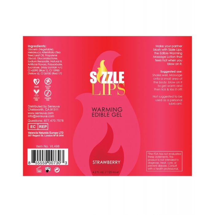 Make your partner blush with Sizzle Lips, the Edible Warming Gel that feels hot when you blow on it. Massage it into a small area of the body, blow on it to get warm and then kiss and lick it all off. The more you rub it in the warmer it feels!