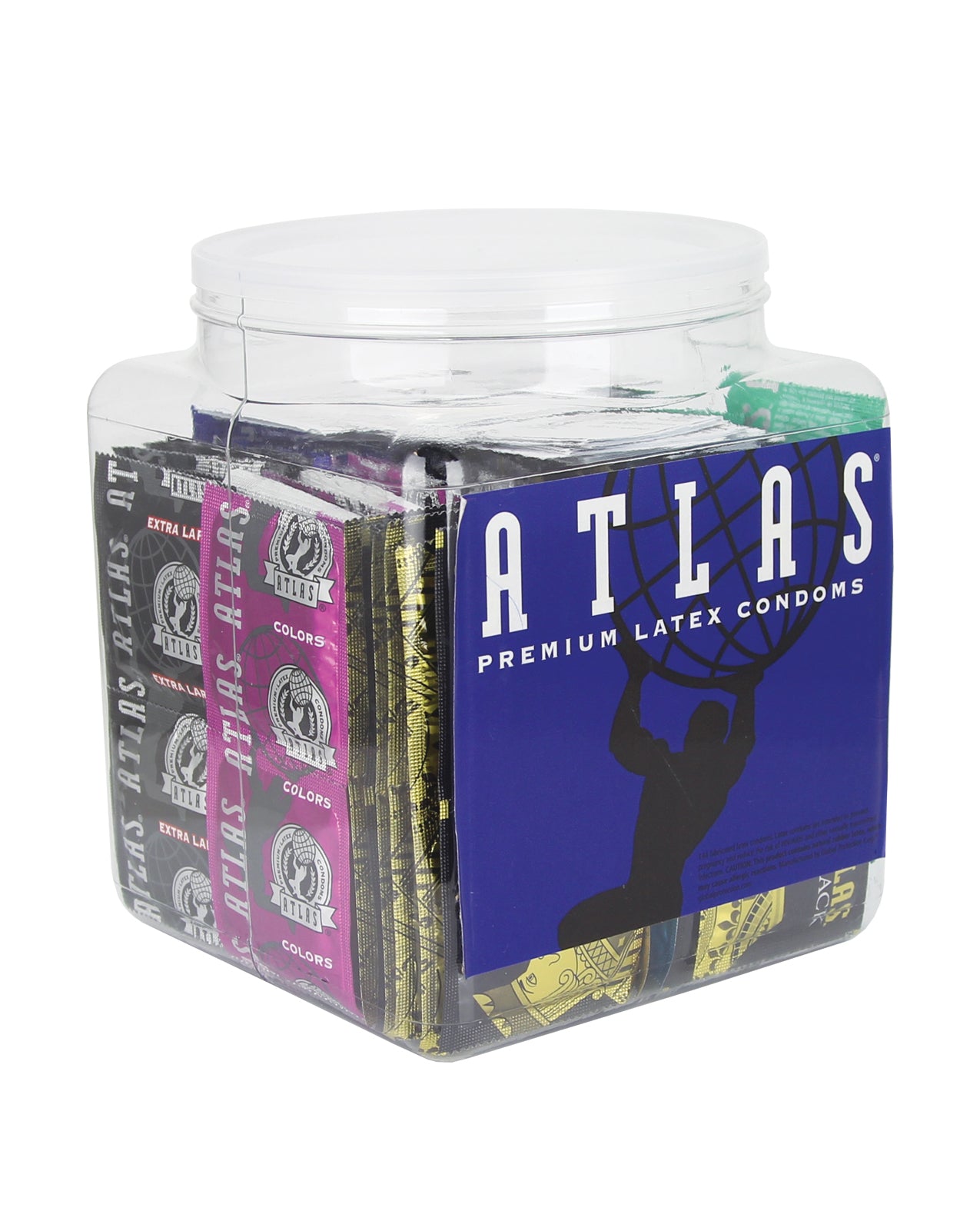 Six great Atlas products in an attractive display bowl. Each bowl includes: Atlas Ultra-Lubed, Atlas Studded, Atlas True Fit, Atlas Extra Large, Atlas Ultra-Thin and Atlas Colors.