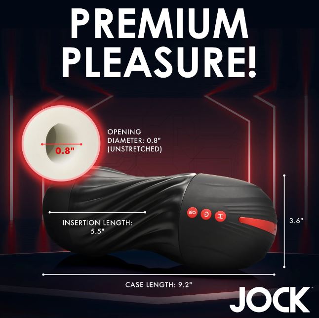 Combine your custom grip and pressure with this sucking and vibrating masturbation toy! Dip your wick in the super soft and stretchy TPE and then squeeze the sides of the case to add your own pressure from your strong grip. The TPE is phthalate-free and body-safe, so you can enjoy going deep and enjoying the sensations, worry-free! Enhance your experience with 5 automatic sucking modes and 7 vibration modes that stimulate and satiate every part of your shaft! Put another custom feel to it with the manual suction button so you can control how much sucking you get at any tie! Designed to be easy to use, it's also easy to clean! Simply remove the case and sleeve, wash with warm water and mild soap, and then let air dry before storing it. Recharge using the magnetic USB charger. Use only with water-based lubricants for best results. Squeeze some lube into the sleeve, then slide your rod inside. As you start to stroke it, turn the buttons on to get even more turned on! The intense sucking modes pull your shaft inside as the vibration buzzes it completely so you can even feel it in your balls! You tighten your grip and feel the pressure increase, just like using your hand but with the power of suction and vibration added to it! You take it slow until you've edged yourself to your limit and then empty your balls into the sleeve. No problem, though. You simply take the sleeve out and rinse it, so it'll be ready and waiting for next time! Measurements: Case length: 9.2 inches, width: 3.6 inches. Insertion length: 5.5 inches. Opening diameter: 0.8 inches (unstretched).
