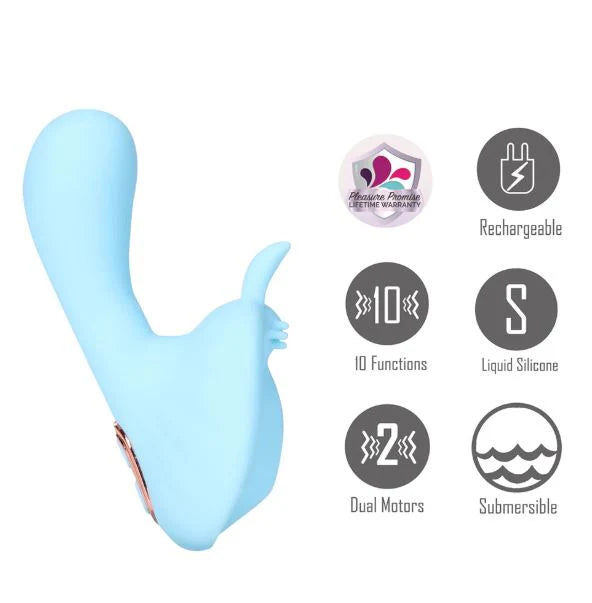 Experience double the pleasure with the MAIA NOVELTIES AVERI, designed to elevate your intimate moments. This innovative toy features two powerful motors that provide stimulating sensations through a vibrating plug and a clitoral stimulator. With 3 speeds and 7 variable levels of vibration for each point, you can customize your experience to find the perfect rhythm for ultimate satisfaction. Crafted from body-safe Liquid Silicone, the AVERI is not only luxurious to the touch but also boasts an impressive IPX7 waterproof rating, making it fully submersible for adventurous wet play. Measuring 2.5 inches in length for both the vibrating plug and the clitoral stimulator, it’s versatile enough for vaginal and anal exploration, as well as clitoral pleasure. FEATURES: Rechargeable, Dual Motor, 3-Speeds and 7-Variable Vibration Levels, Submersible, Charging Cable Included. Operating Instructions: Press and hold the Push-Buttons for 3 seconds to activate the vibration on each stimulator. Press and release the Push-Buttons to cycle through the 10-functions on each stimulator. Press and hold the Push-Button for 3 seconds to turn your item off.