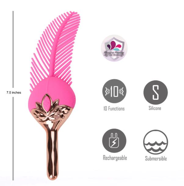 FEATURES: Medical Grade Silicone + ABS Plastic, Rechargeable, 3-Speeds + 7 Variable Patterns Length = 7-1/2 inch, Submersible, Magnetic Charging Cable Included, Pleasure Promise Warranty