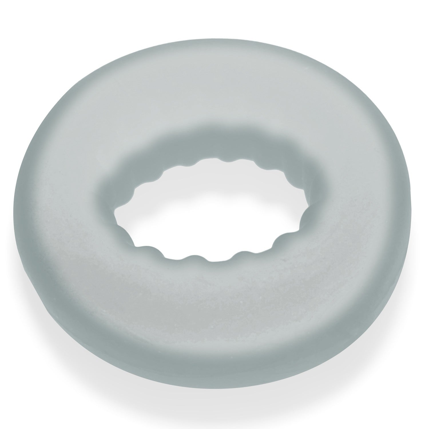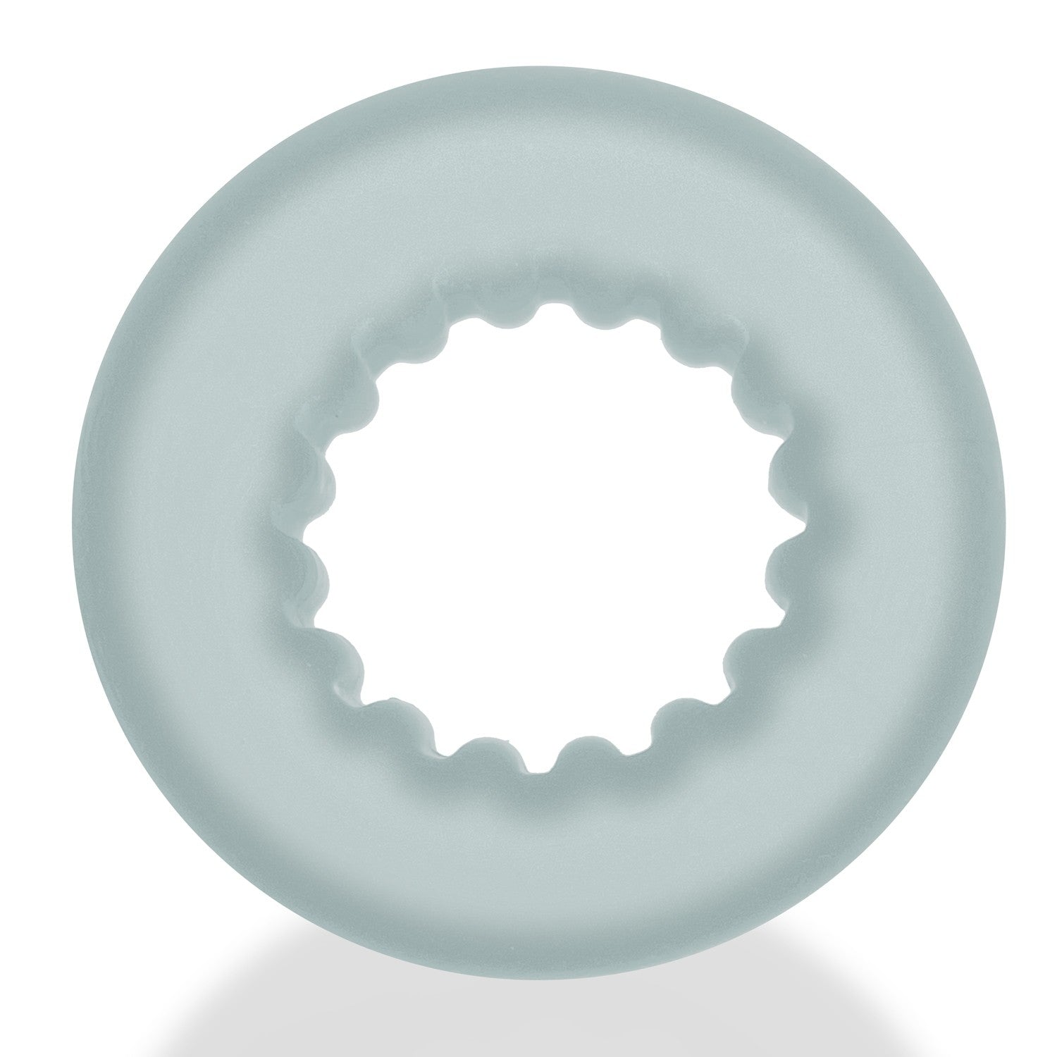 Axis Rib Griphold Cock Ring Clear Ice from Oxballs. Shockingly superior. Axis comfort cock ring is sized for bulging and boning. It is our most rubbery soft Plus + Silicone blend that is softer and stronger than regular Silicone. It is the right size and feel for longer wear, the right stretch for the best fit. The inner rim of Axis is lined with humpy ridges all the way around for a different feel than our smoother rings, the ribs add more grip and more space for lube around your cock and balls and bit of a squishy juicy feel. Our dull finish colors made of our custom Plus + Silicone mix has a lush feeling velvety smooth finish and a warm freshness perfect for the best cock ring feel. Oxballs makes the good gear better, we design cock rings that do more, that fit better and feel right. Categories: Love Rings, Cock Rings, Men's Cock and Ball Gear, Gentlemen Cock Rings. Restricted, Amazon Restricted. 2022.