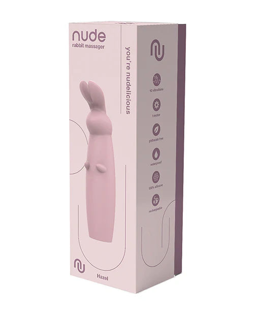 It's easy to use the Nude Rabbit Massager Hazel because of the single button operation to cycle through the 10 strong vibrations. It has 7 rhythms and 3 speeds. Hazel's ears are soft and flexible, which makes this vibe perfect for beginners and for anyone who likes subtle and tantalizing stimulation inside and out. The Nude rabbit vibrator is made of smooth soft silicone and ABS, free of phthalates and body safe. Hazel has an IPX6 rating for water resistance. For charging after use the vibrator has a waterproof charging hole. A USB pin cable is included. After a full charge your Nude vibe is ready for 90 minutes of nudelicous delight.