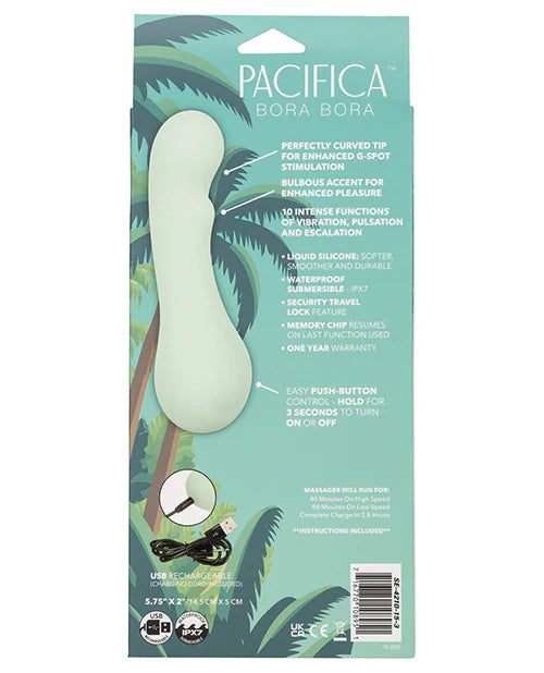Dive into a world of blissful pleasure with the Pacifica Bora Bora, a luxurious intimate accessory designed to ignite your desires and awaken your senses. Its perfectly curved tip is meticulously crafted to provide enhanced G-spot stimulation, while the bulbous accent promises heightened pleasure like never before. With 10 tantalizing functions of vibration, pulsation, and escalation, this captivating toy offers a symphony of sensations for any craving. Crafted from transparent liquid silicone, the Pacifica Bora Bora boasts a softer, smoother texture that feels sublime against your skin. Its remarkable durability and waterproof design with an IPX7 rating invite you to explore your fantasies in the bath or shower, embracing sensuality without boundaries. Thanks to the state-of-the-art memory chip feature, this seductive companion always remembers your last chosen function, allowing you to effortlessly pick up where you left off on your journey to ecstasy. For adventurous souls, a security travel lock feature adds an extra layer of discretion. A simple 3-second hold activates or deactivates it, ensuring your privacy during your explorations near and far. With USB rechargeable convenience, it ensures you never run out of passion. A complete charge in just 2.5 hours provides up to 40 minutes of intense satisfaction on high speed or an extended 90 minutes of delight on low speed. Surrender to temptation, and let the Pacifica Bora Bora transport you to a world of unforgettable pleasure.